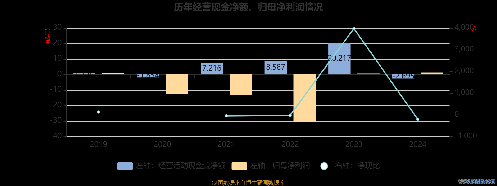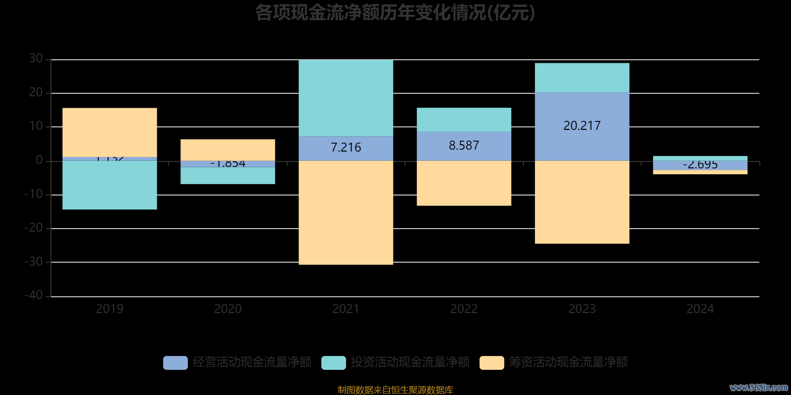 2024年,公司经营活动现金流净额为-2.69亿元,同比减少22.91亿元;筹资活动现金流净额-1.28亿元,同比增加23.2亿元;投资活动现金流净额1.43亿元,上年同期为8.67亿元。