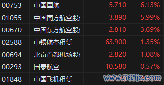 5月26日消息,港股航空股逆市拉升,中国国航涨超6%,中国南方航空股份涨近6%,中国东方航空股份涨超3%。